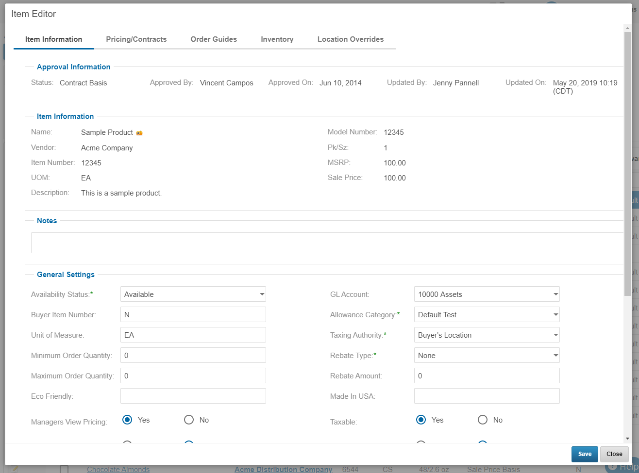 Lastly, items can become Approved Items when a Corporate User locates the item in the Product Catalog and marks it as Available.