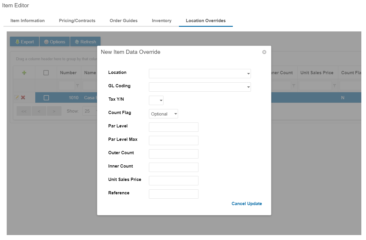 Location Overrides: Modify location-specific information for an item when the default settings do not apply.