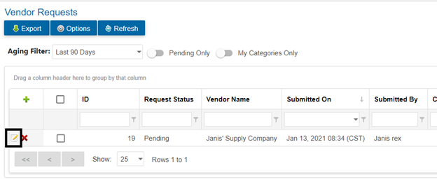 If the vendor already exists in the EPRO system, then this request will be associated with the relevant vendor.
