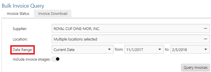 Enter the range of invoice numbers you are researching > select a supplier > click Query Invoices.