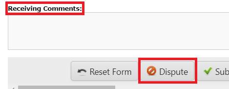 Enter comments regarding your Dispute in the Receiving Comments section > Dispute.